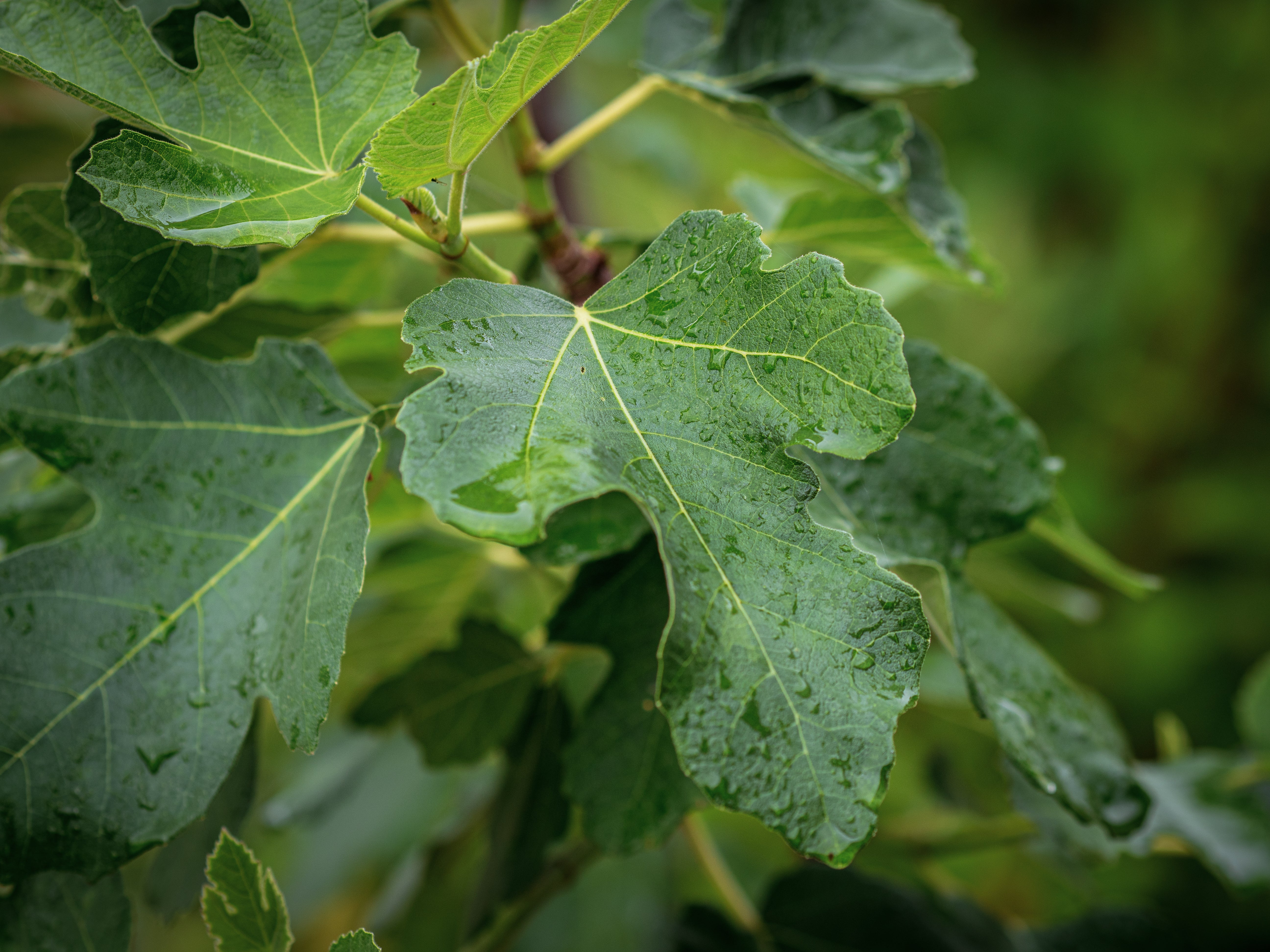 Die Blüten der Feige entwickeln sich unsichtbar im Inneren der jungen Fruchtanlagen und sind von außen nicht erkennbar. Der Blütenstand ist ein nach innen gestülpter fleischiger Hohlraum, in dem die winzigen Einzelblüten sitzen. Da die Blüten vollständig von Gewebe umschlossen sind, bietet 'Brown Turkey' keinen Wert für Bienen oder andere Insekten. Die Fruchtbildung erfolgt parthenokarp ohne Befruchtung, weshalb die Sorte auch in Regionen ohne Feigenwespen zuverlässig trägt. Die Fruchtansätze erscheinen ab Juni zusammen mit dem Laubaustrieb.