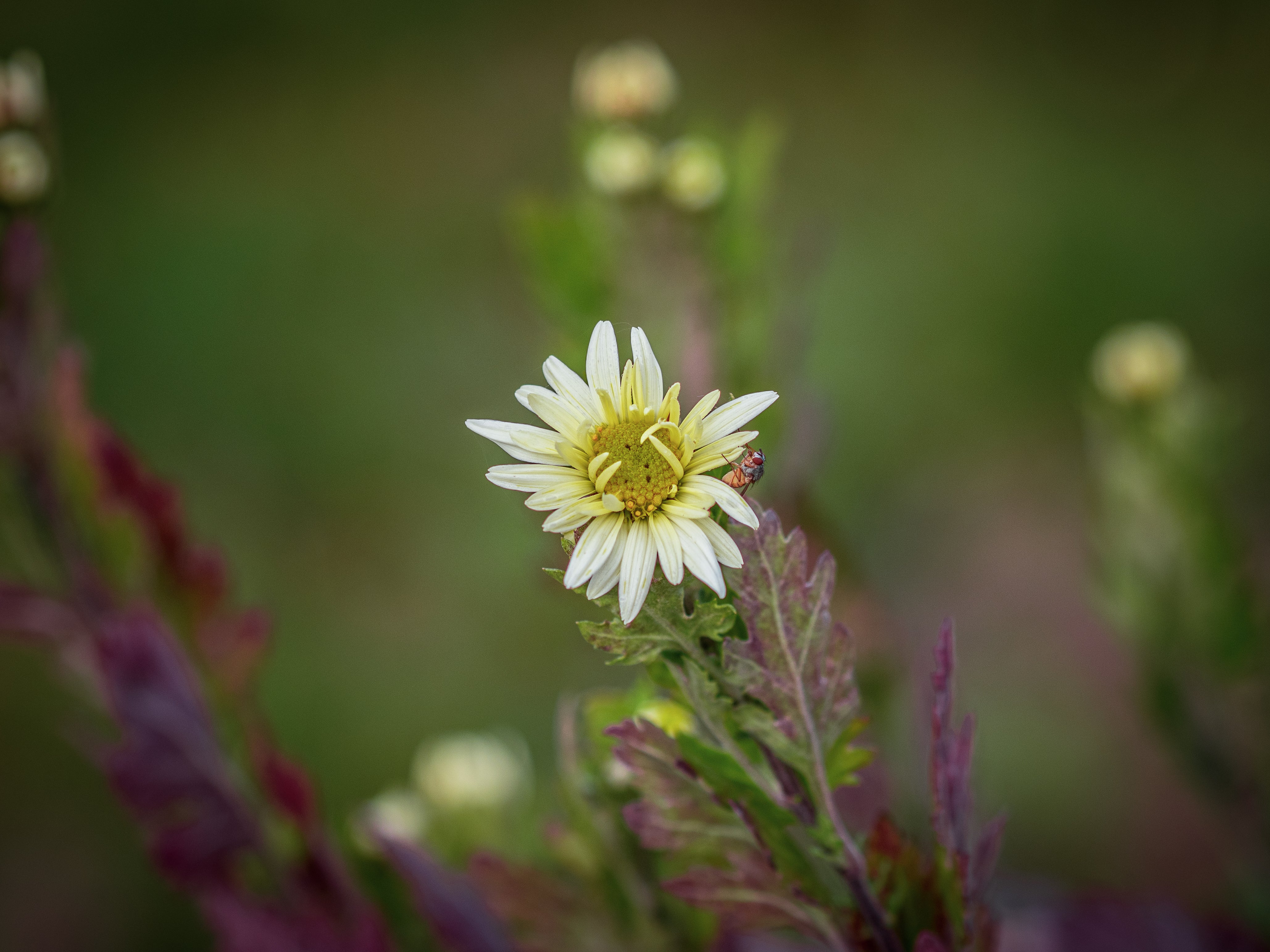 Die weißen Blüten erscheinen ab September und halten bis zu sechs Wochen an. Dank ihrer offenen Blütenform mit zugänglichen Nektarien ist die Chinesische Tee-Chrysantheme eine wertvolle späte Bienenweide und wird auch von Schwebfliegen besucht.